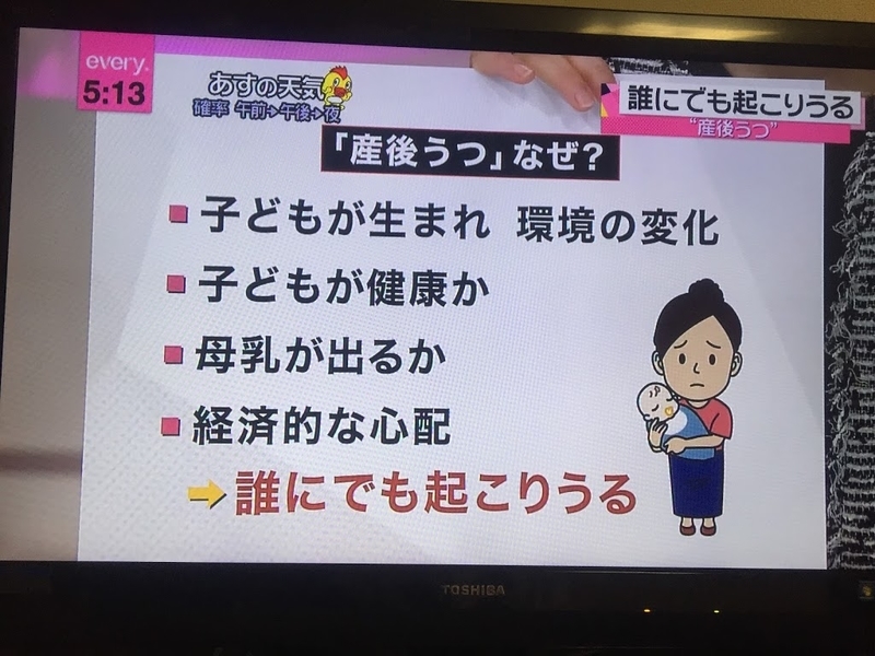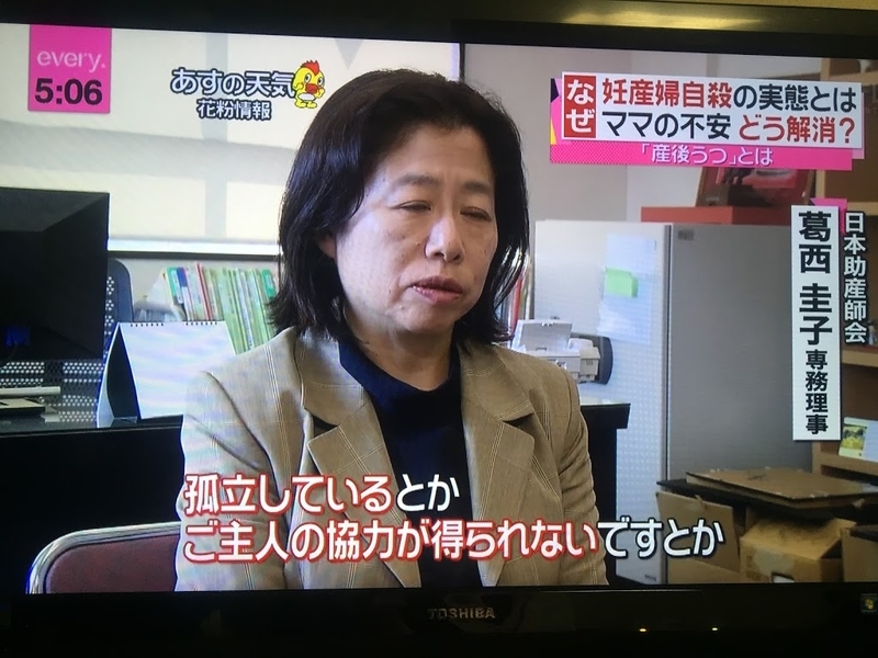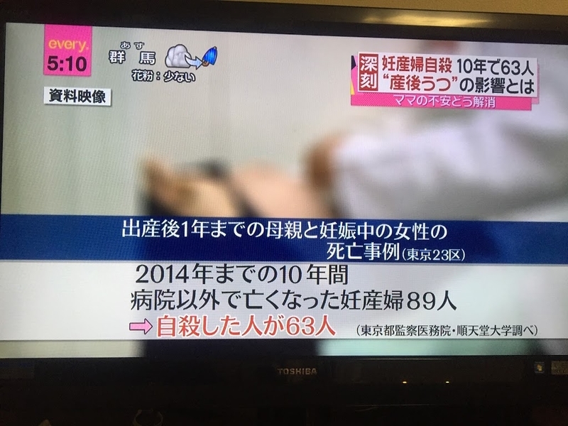 2016年4月26日 17:00 頃から日テレ News every. で「なぜ?出産女性の自殺10年で40人3分の1が“産後うつ”ママの不安どう解消?」という特集が組まれていました。 ご覧になった方も多いかと思いますが、要点のみをピックアップしたいと思います。